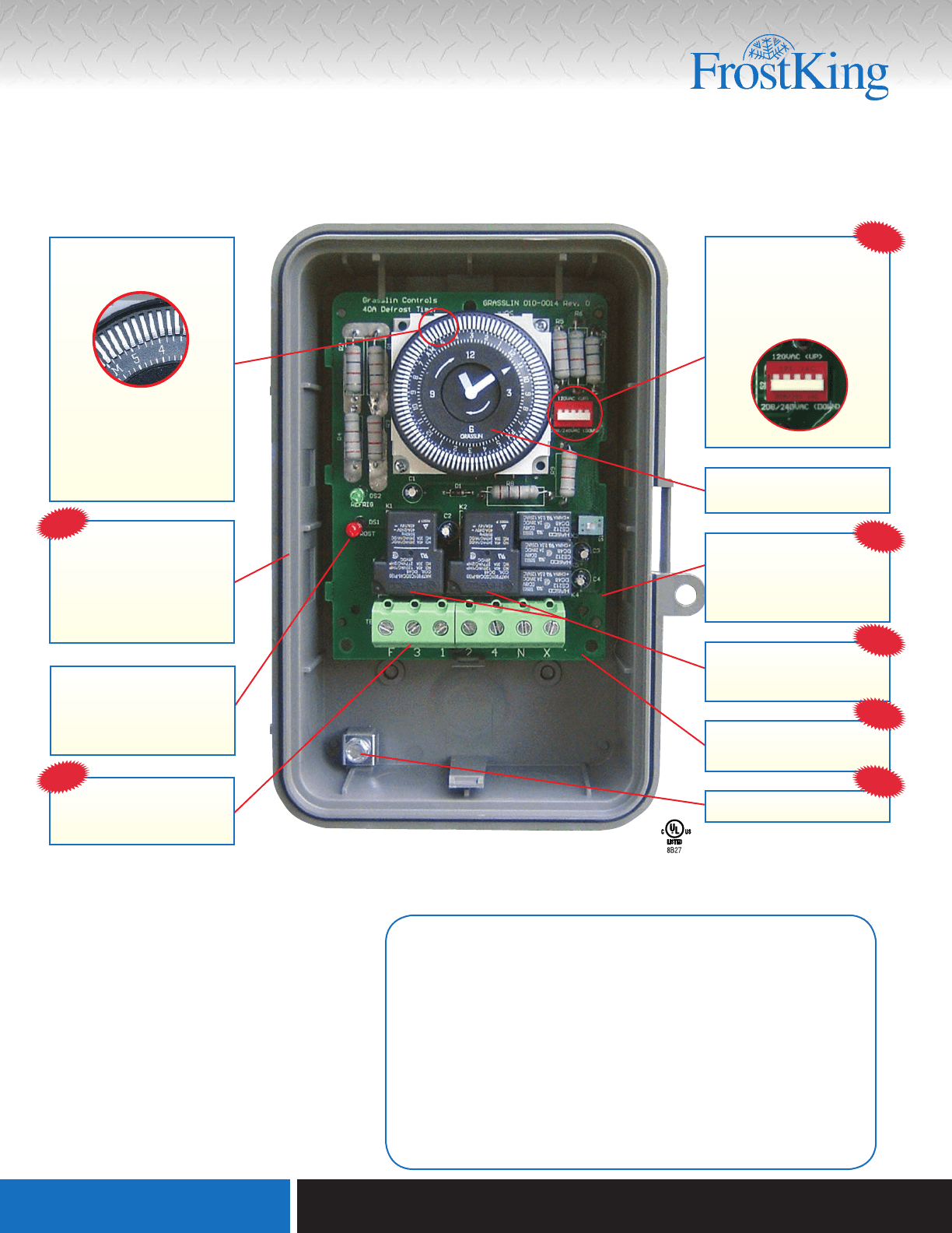 Images. The dtav40 defrost timer is equivalent in function, terminal identification (with appropriate terminal block label attached), and wiring to the paragon 8140 and precision 6140 series defrost timers. The dtav40 may also be used to replace paragon 8040 and precision 6040 series time terminated defrost timers. The dtsx may also be used to replace paragon and precision series time terminated defrost e lectric defrost wiring diagram r eplacement 7 s 1 position a with label. Do not combine timer to control a load on a separate supply circuit, which can be a different. Furnish and install a grässlin_____defrost control, which will automatically adjust between 120 vac and 240 vac operation.